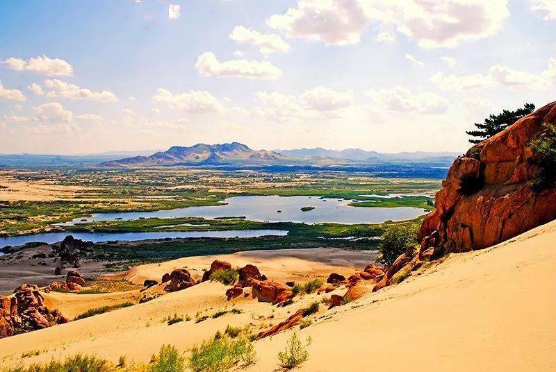 登高望远,赤峰风光尽收眼底,东南方,辽阔平原,一望无际;西北方,崇山峻岭,巍峨壮观,极目远眺,千里草原,牛羊成群,毡房点点,构成一幅塞北风情画。